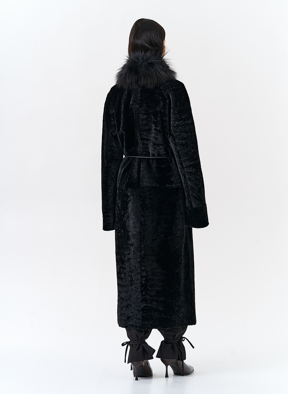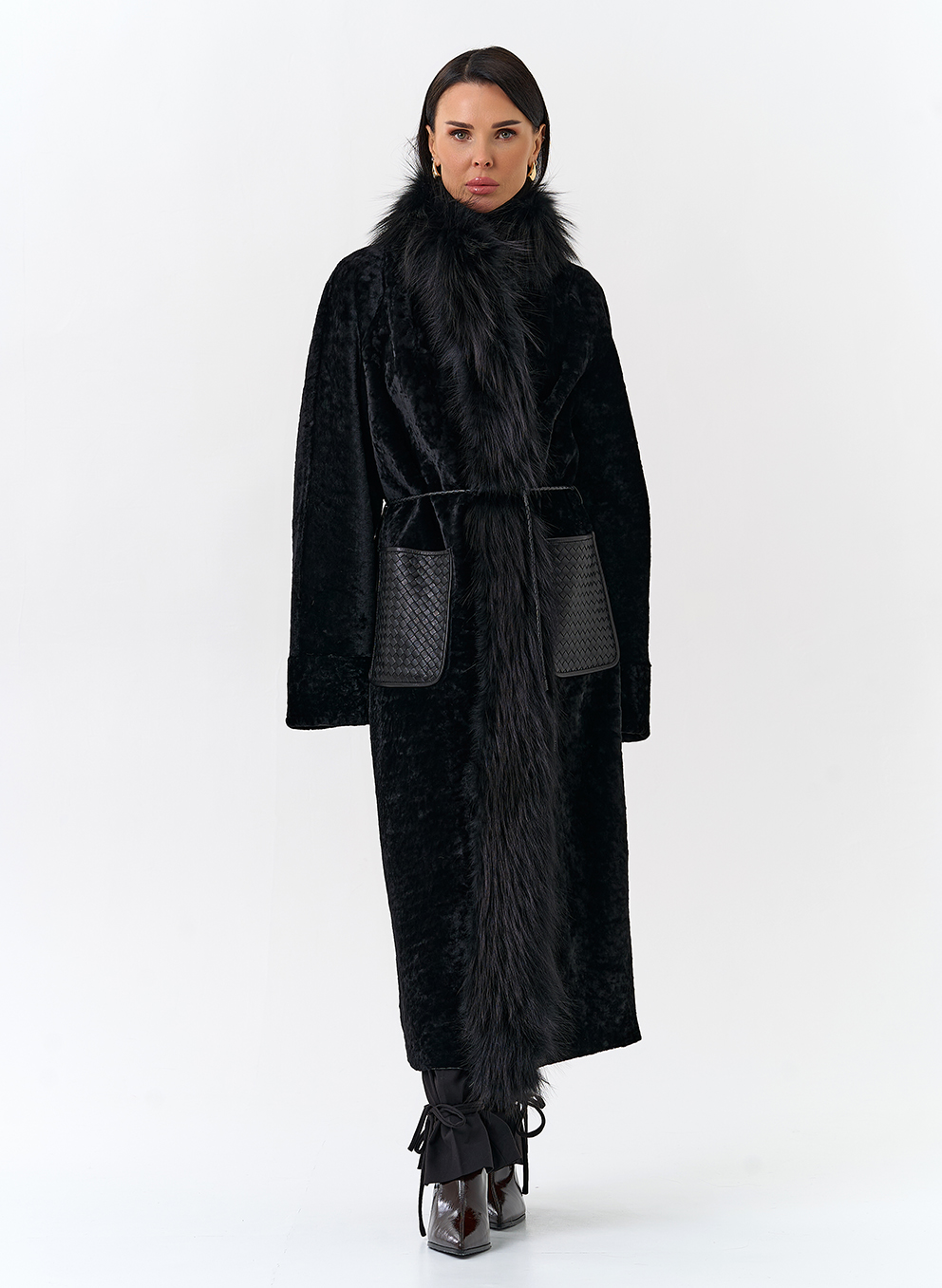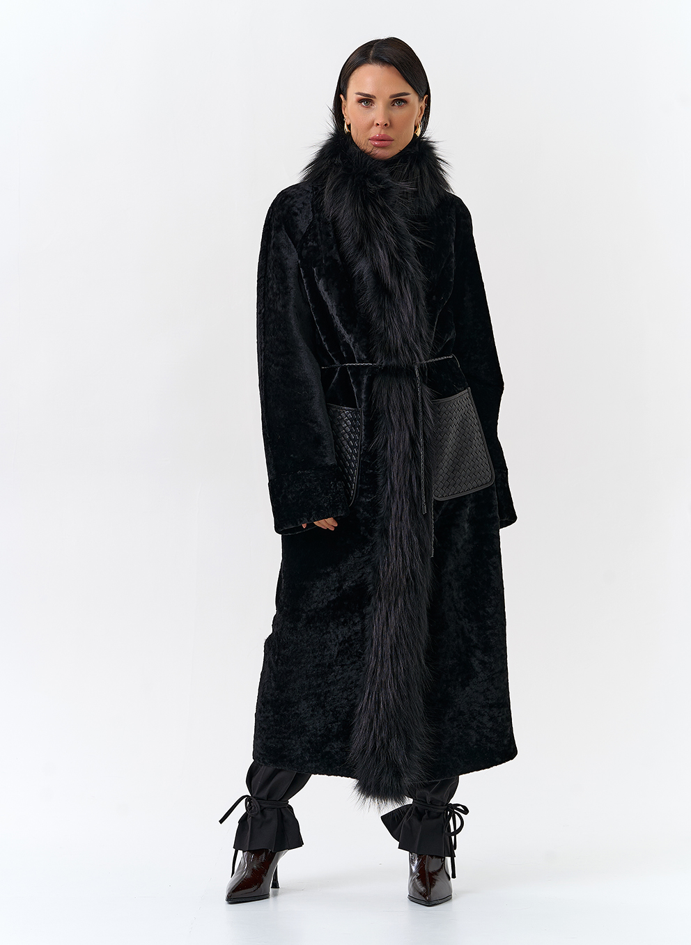 Вид ворота - апаш, отделка чернобурая лиса, цвет - черный
