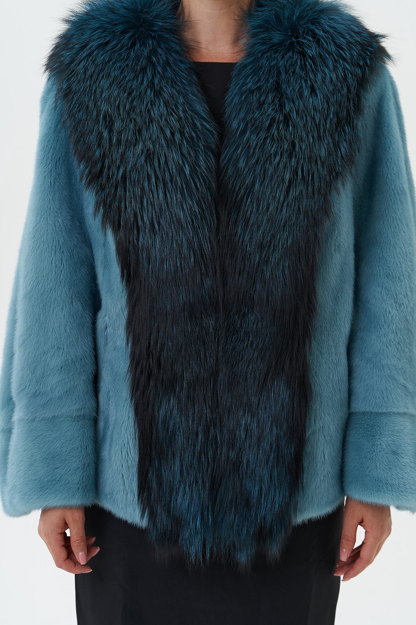 Тип ворота - V - образный воротник , отделка чернобурка